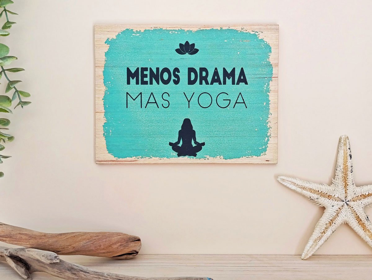 / CARTEL DE MADERA «MENOS DRAMA, MAS YOGA»