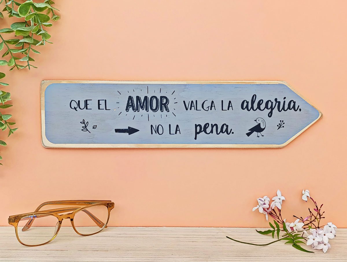 CARTEL DE MADERA «QUE EL AMOR VALGA…»
